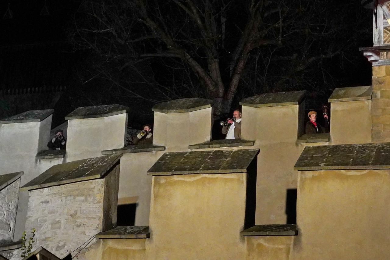 Koledy a vánoční písně, jako například Tichá noc, Narodil se Kristus Pán nebo Štedrý večer nastal, zahrálo kvarteto hudebníků ze souboru Třehusk na pěti místech naší obce. U kapličky v Krupné trubače vítal houf příznivců, lidé si koledy přišli poslechnout také na náměstí u Muzea betlémů, kde je rozsvícen karlštejnský Vánoční strom. Zvláštní atmosféru mělo vystoupení u hřbitovní zdi pod kostelem sv. Palmácia. Nad údolím se nesla Tichá noc a lidé pak tleskali z oken nebo balkónů. Hudební putování trubači a kontrabasista zakončili na hradbách majestátního hradu Karlštejn, z něhož znělo Adventní poselství v podobě písně Dej Bůh štěstí tomuto domu.