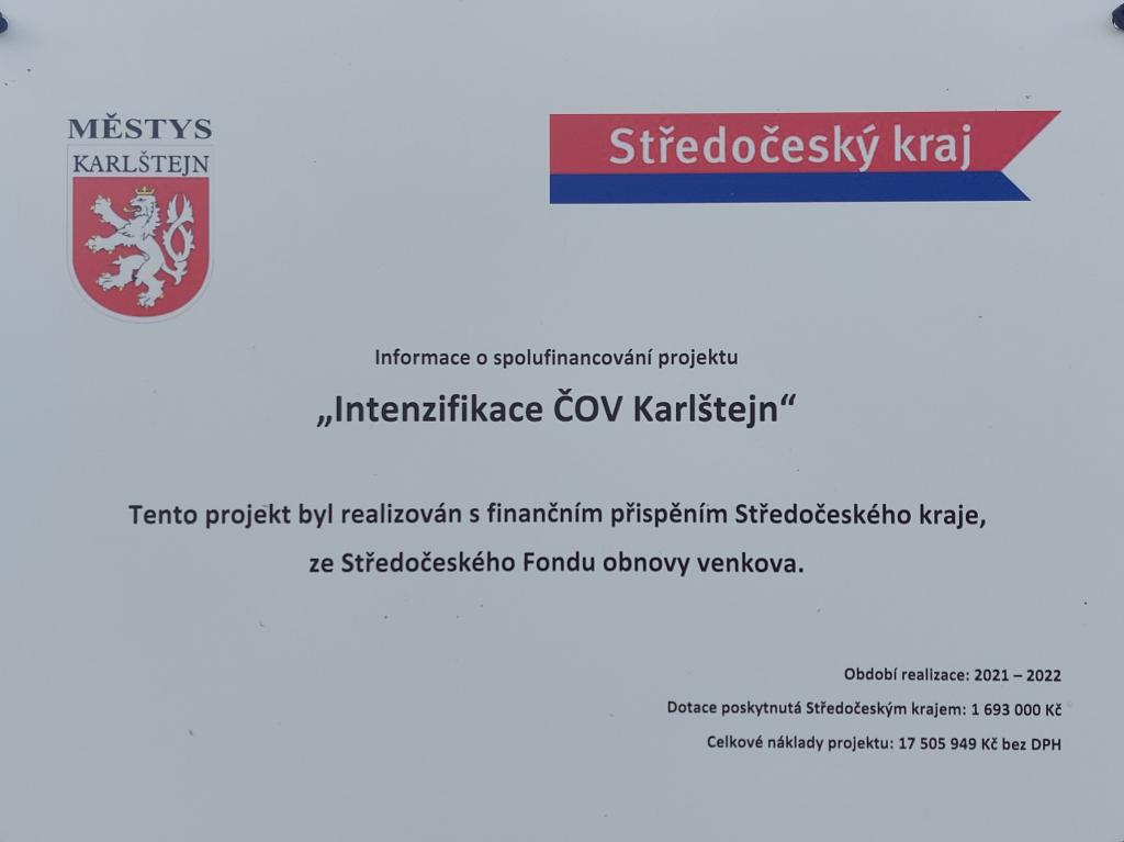 Intenzifikace ČOV Karlštejn za podpory Středočeského kraje.